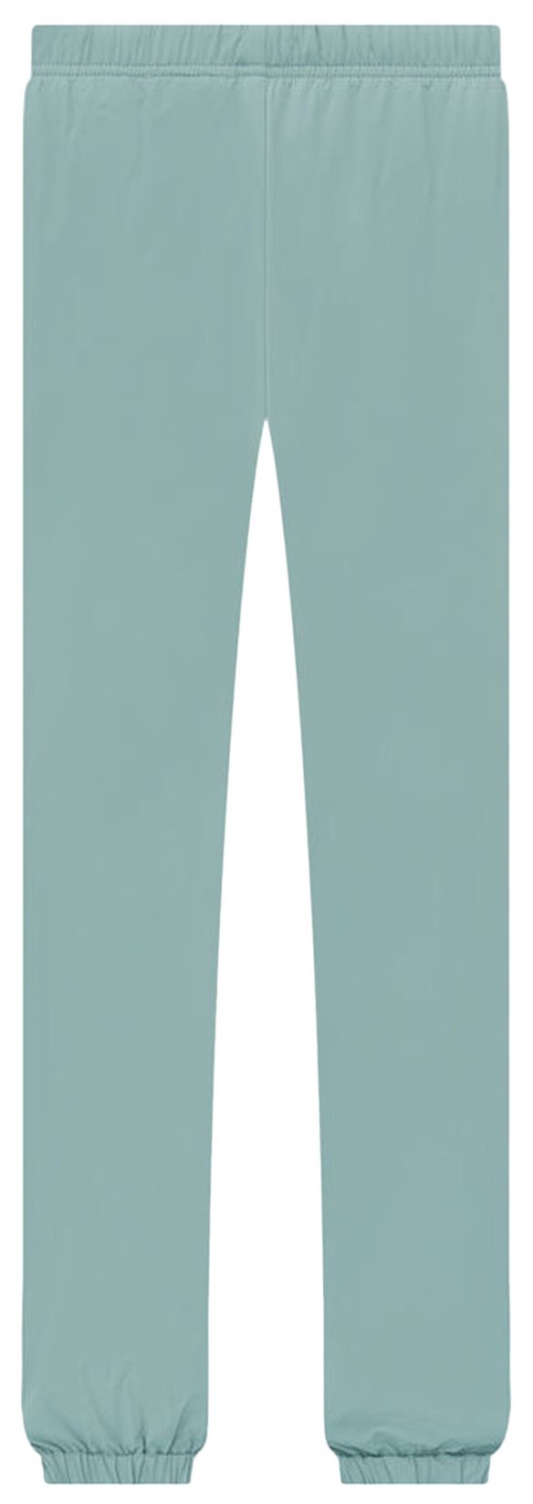 The Fear Of God Essentials Sycamore Relaxed Sweatpants feature an oversized fit, a rubber brand label on the front, a bold "ESSENTIALS" hip graphic, and an adjustable waistband with long drawstrings.