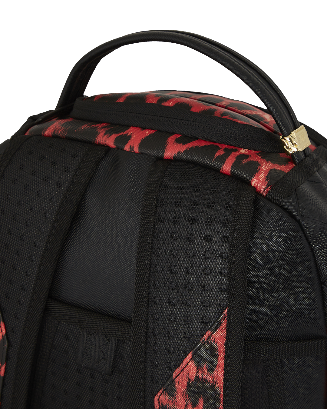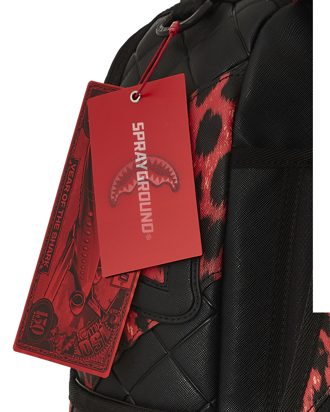 Dimensions: 18" x 6" x 11.5" • Front zipper pocket • Side pockets • Zippered Stash pocket • Separate velour sunglass compartment • Ergonomic mesh back padding • Adjustable Straps for custom sizing • Gold zippers with metal hardware • Metal "Sprayground Authentic" badge • Slide through back sleeve connects to carry-on luggage to free your hands