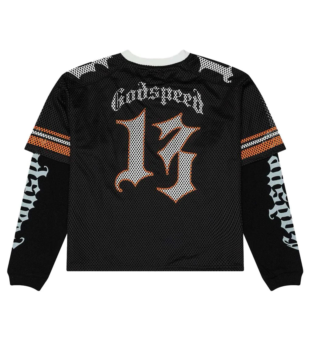 Mesh jersey body with Godspeed and number graphics