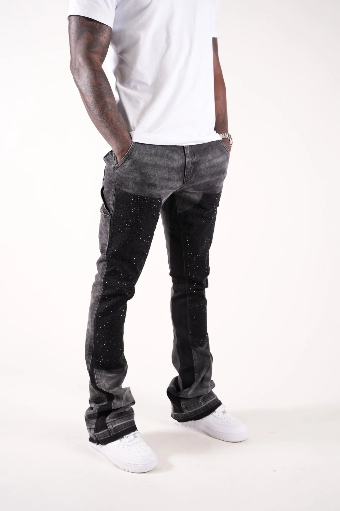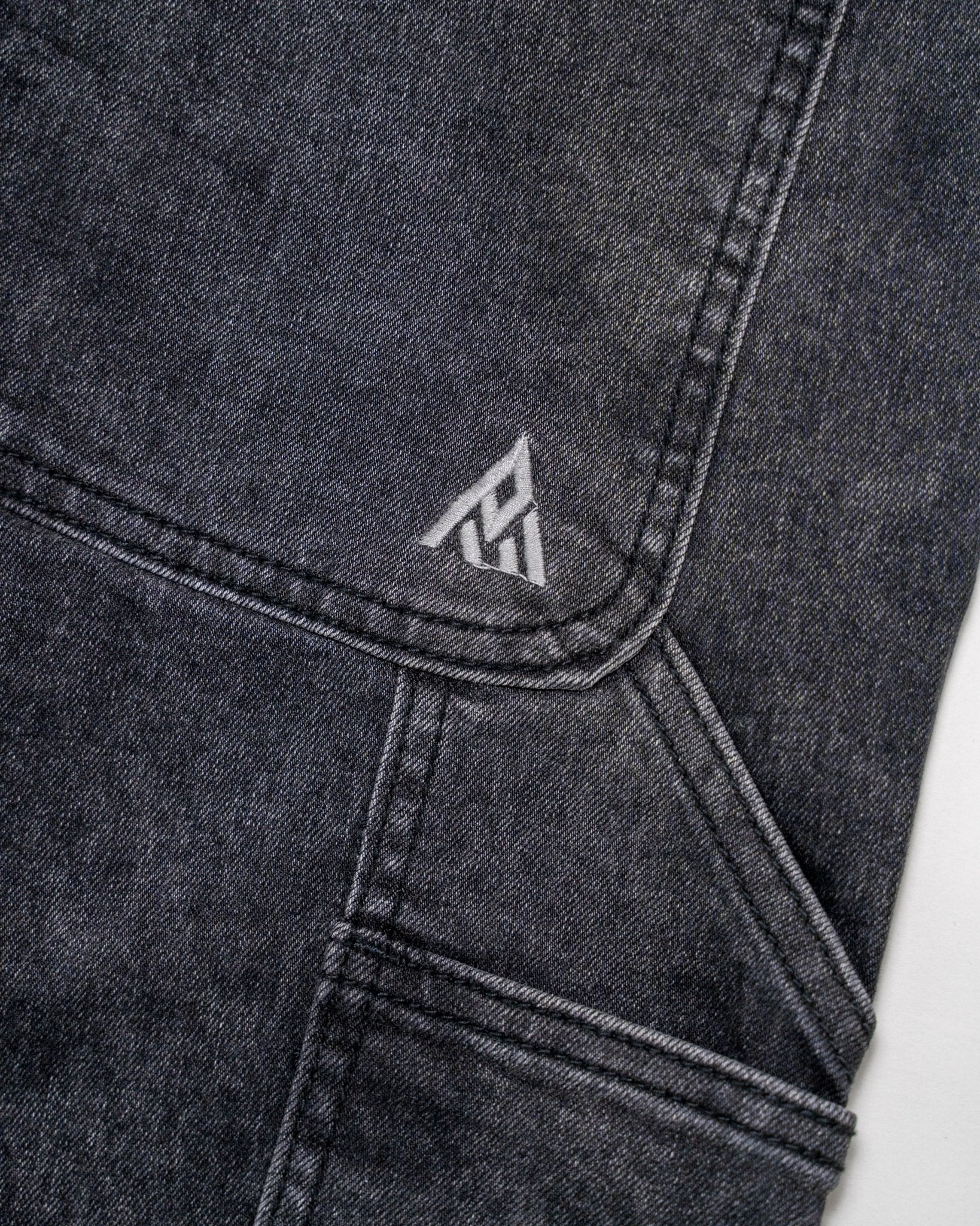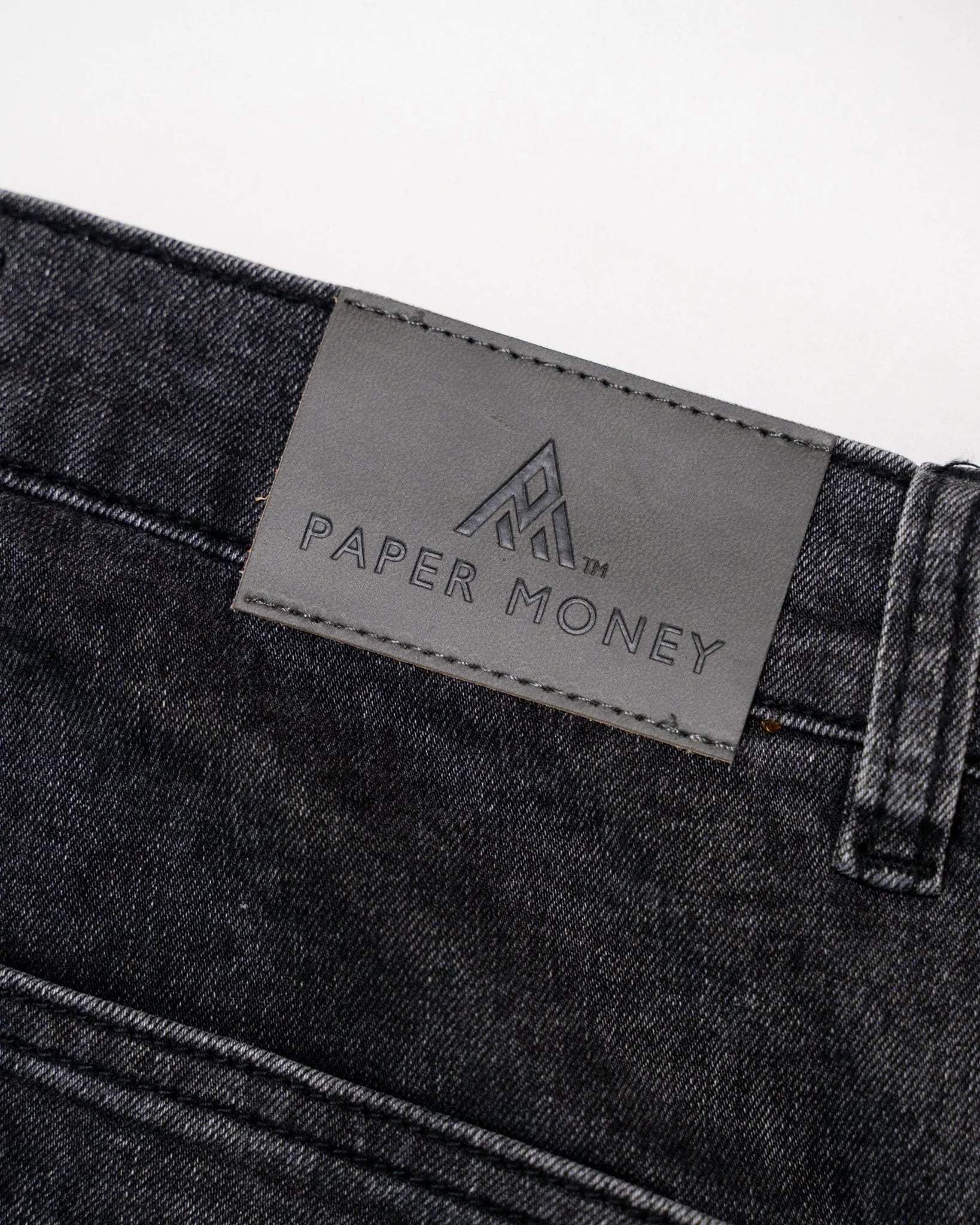 A sleek black carpenter jean featuring signature Paper Money diamond detailing. Durable, stylish, and built for everyday streetwear.