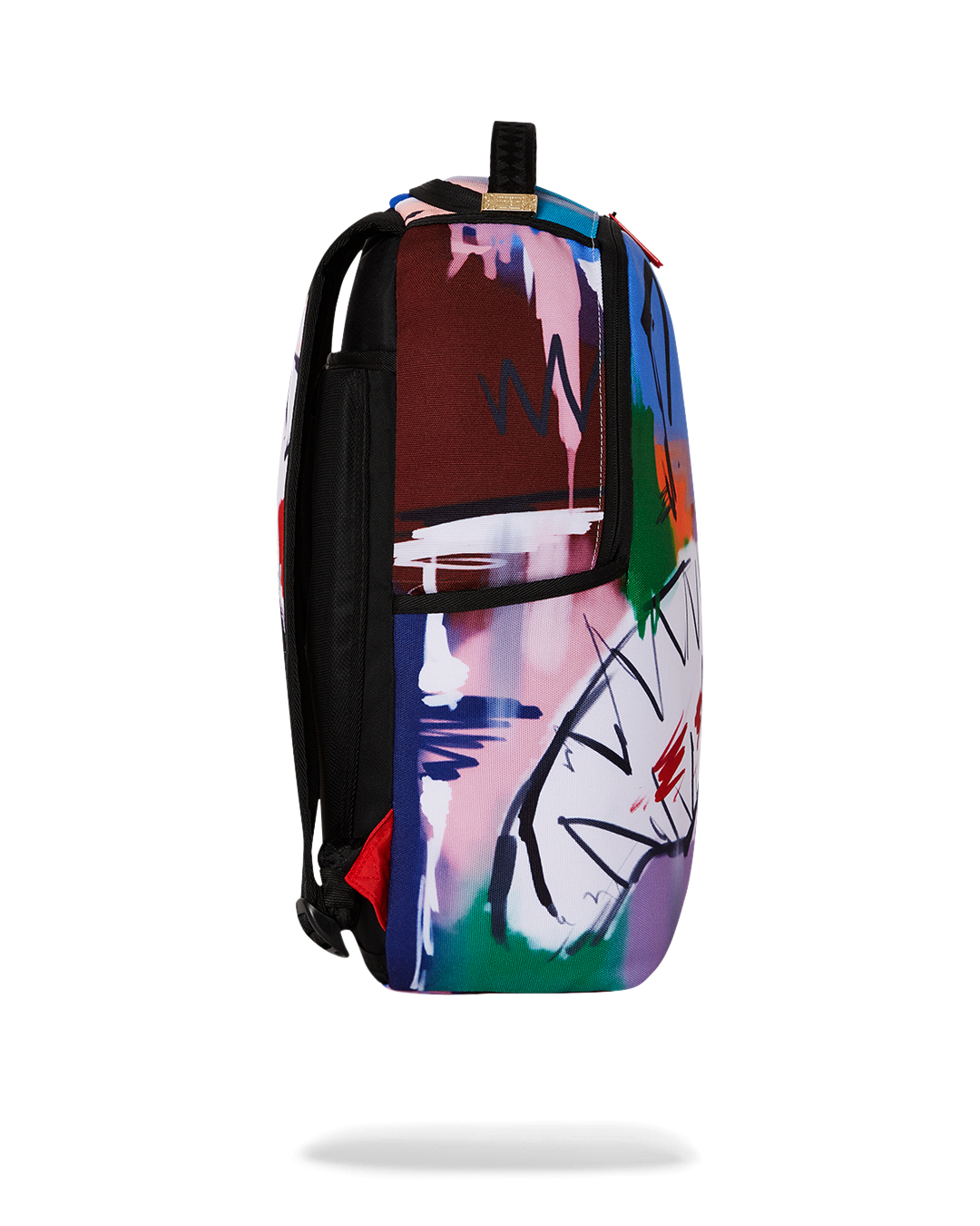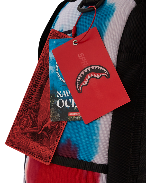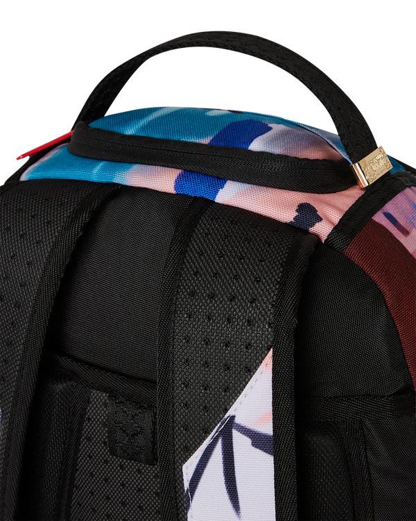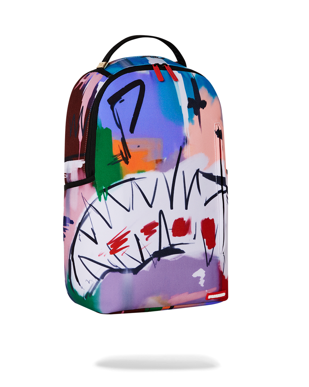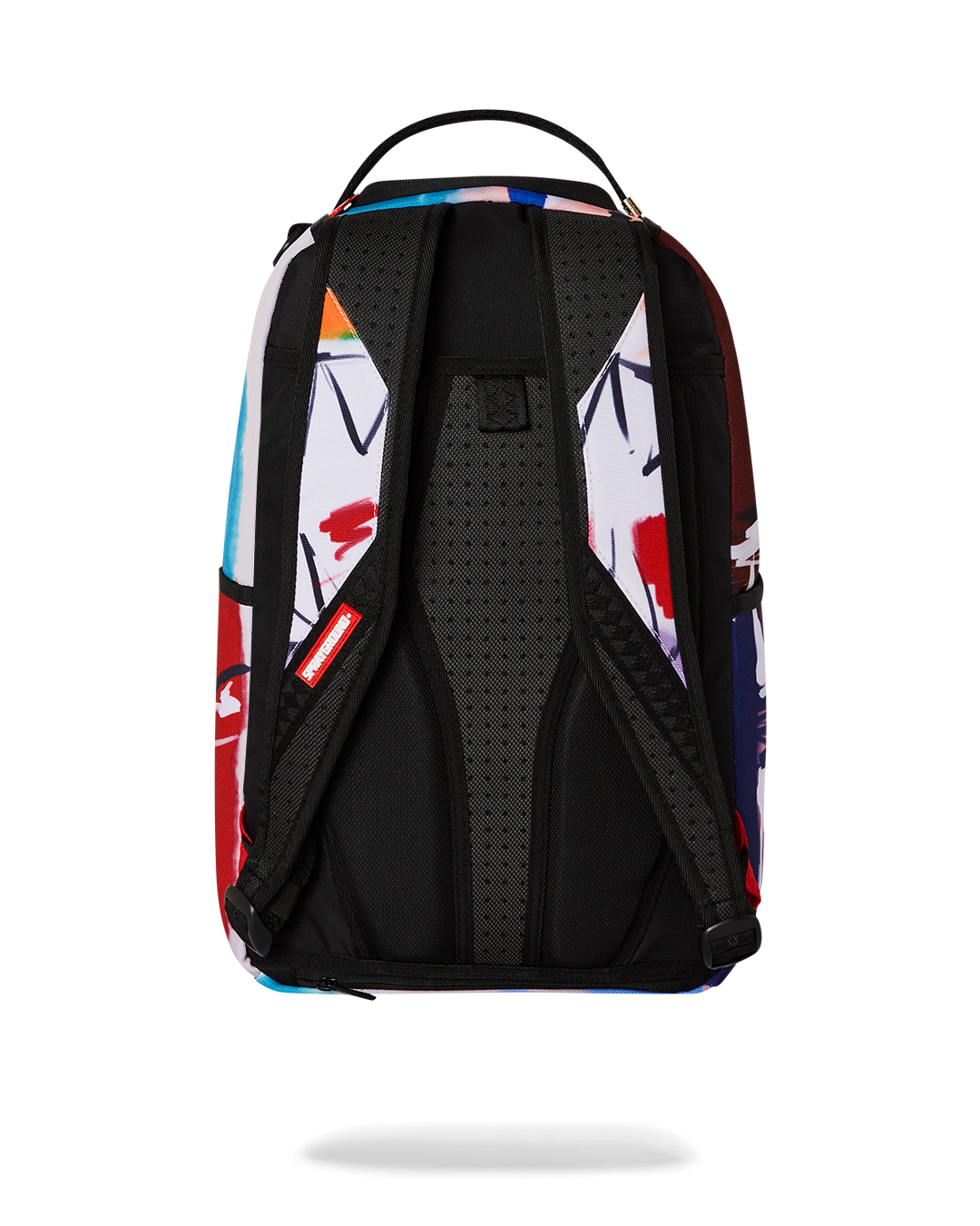 Dimensions: 18" x 6" x 11.5" • Front zipper pocket • Side pockets • Zippered Stash pocket • Separate velour sunglass compartment • Ergonomic mesh back padding • Adjustable Straps for custom sizing • Gold zippers with metal hardware • Metal "Sprayground Authentic" badge • Slide through back sleeve connects to carry-on luggage to free your hands