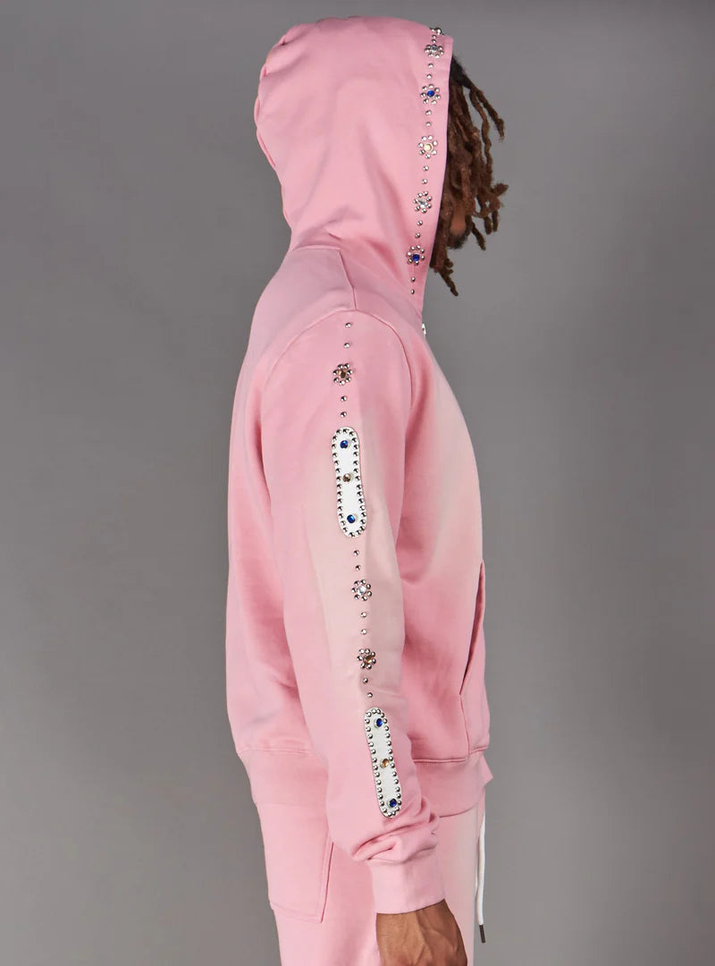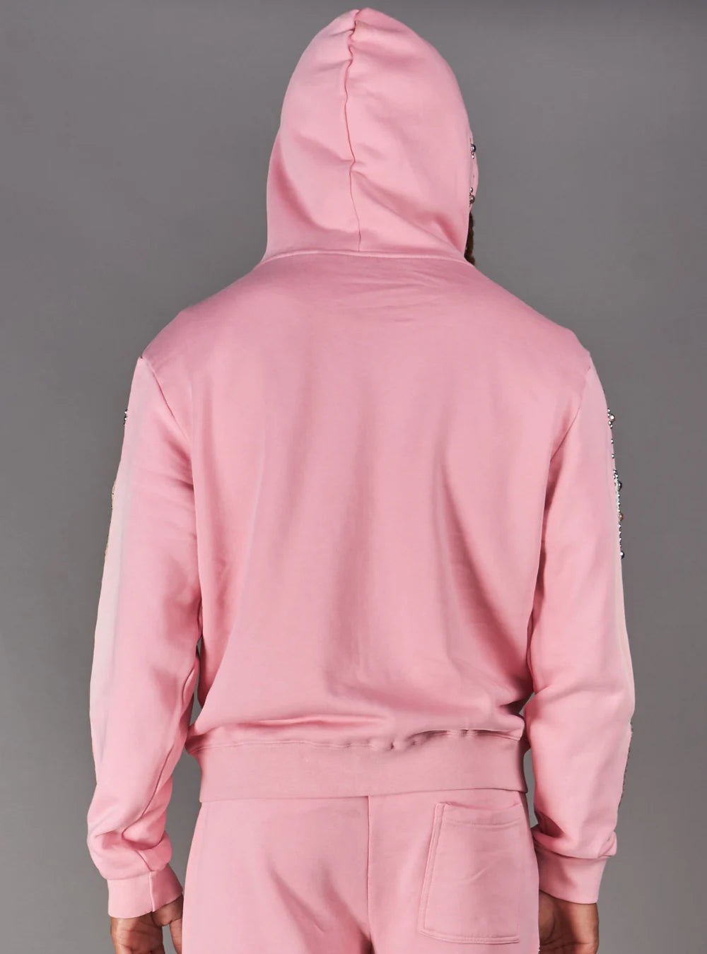 Rhinestone detailing along sleeves and hood
