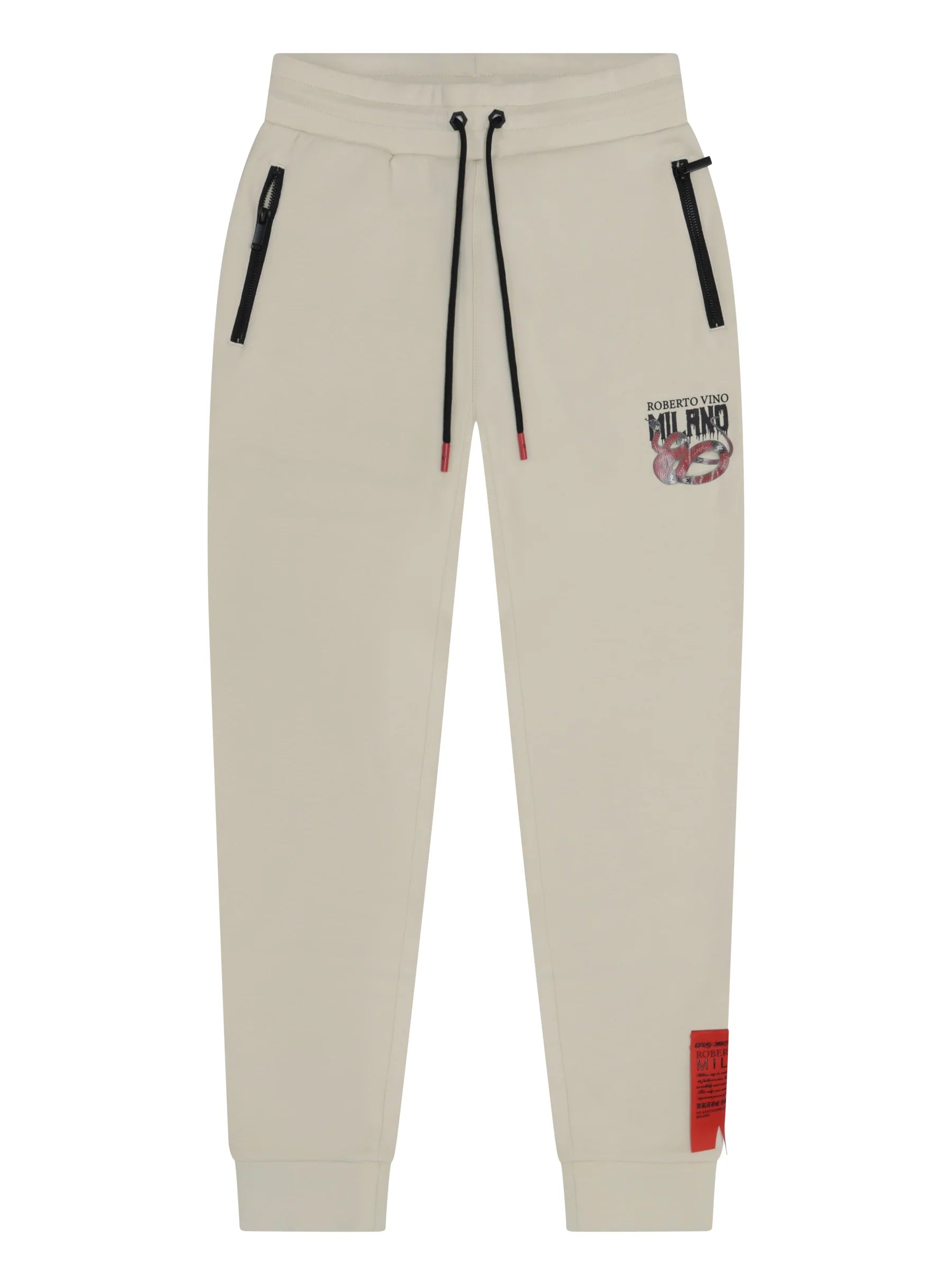 - Beige colorway with red snake graphic