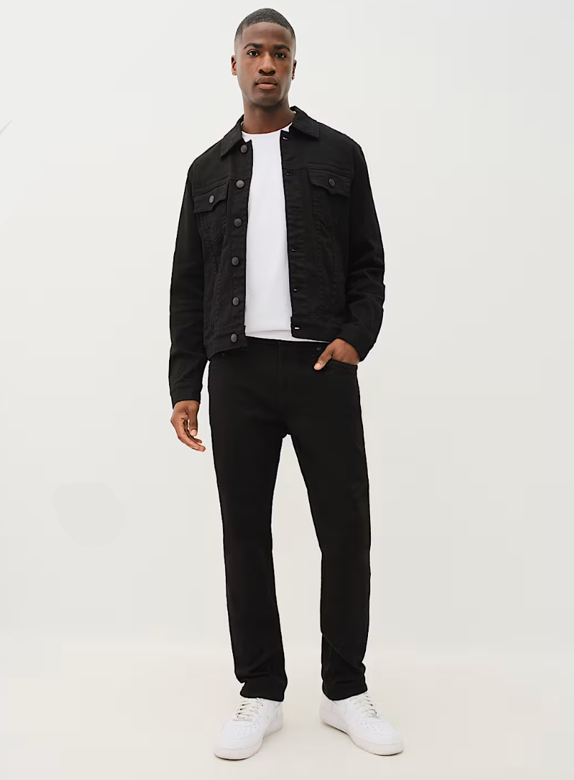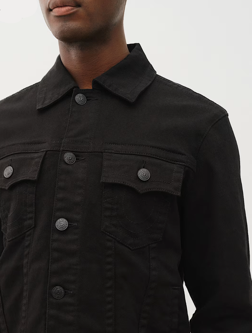 The Denim Trucker Jacket is a seasonless essential for any closet. Cut in a clean black denim wash, this men's jean jacket features a classic, collared, button-front design. Finished with tonal matte hardware, clean tonal stitching, two chest flap pockets, and two waist welt pockets.