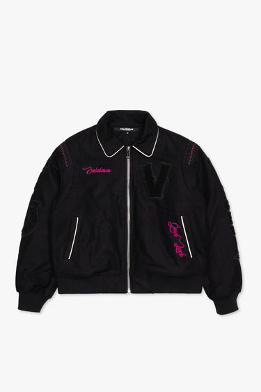 "WILD BUNCH" FUCHSIA LETTERMAN JACKET