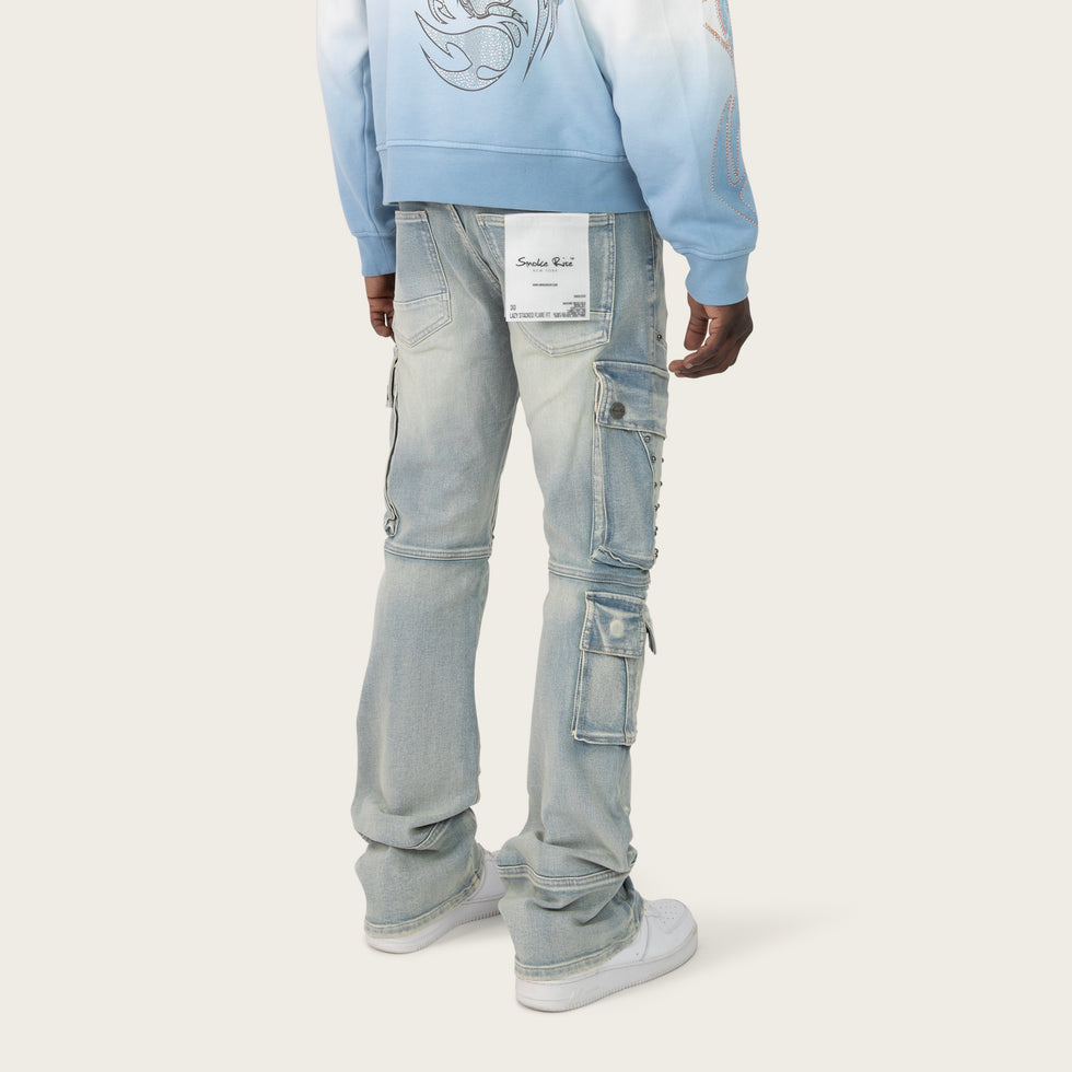 Smoke Rise - Lazy Stacked Utility Jeans - Baltic Blue