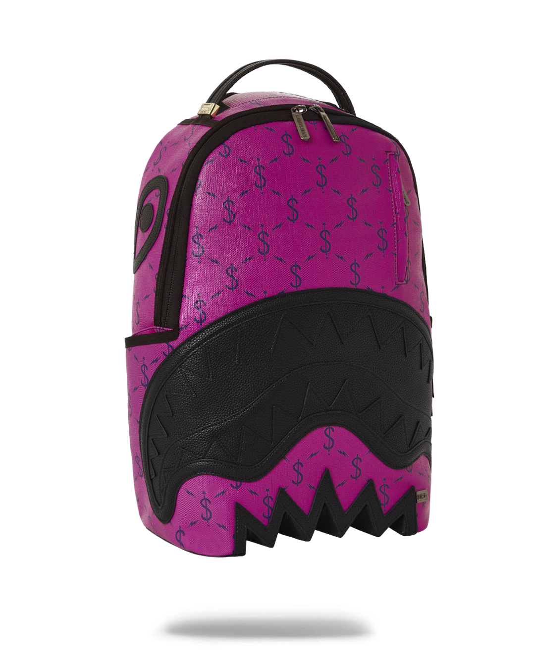 Dimensions: 18" x 6" x 11.5" • Front zipper pocket • Side pockets • Zippered Stash pocket • Separate velour sunglass compartment • Ergonomic mesh back padding • Adjustable Straps for custom sizing • Gold zippers with metal hardware • Metal "Sprayground Authentic" badge • Slide through back sleeve connects to carry-on luggage to free your hands.